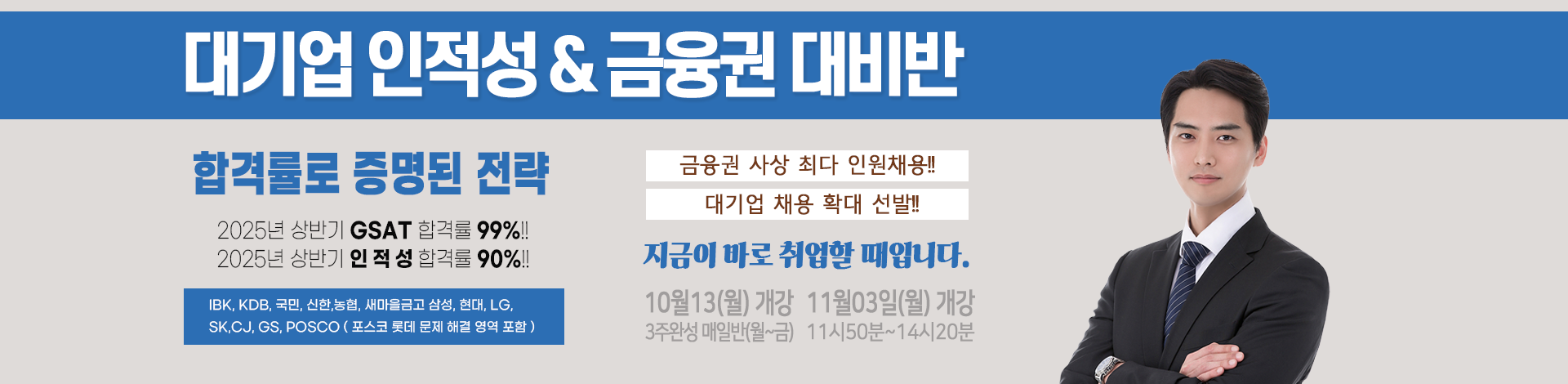 • ★박윤NCS인적성 수강생 전용★ 2025년 하반기 공기업/대기업 면접컨설팅홈페이지 신청 후 개별 일정 조율신청일부터 면접일 이내 집중 컨설팅 3회