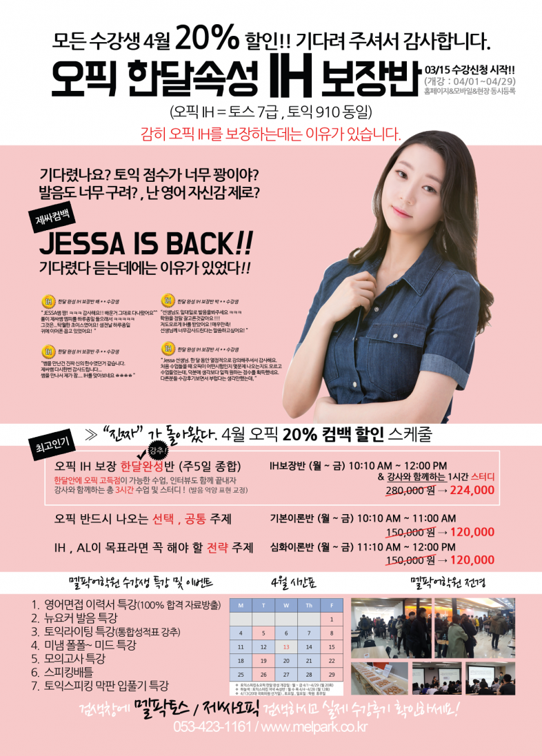 오픽 한달완성 20%파격할인 IH 보장반!!