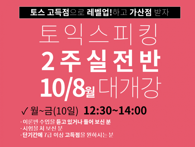 공지 | 토스&인터뷰 2주실전반 10/8(월)개강!! <<수강생 특별할인>>