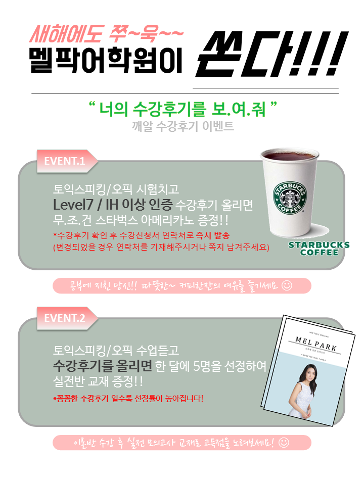 이벤트 | 수강후기 아메리카노 증정 이벤트!!! 페이지 정보 작성자 MELPARK 작성일16-02-11 15:21 조회3,462회 댓글0건 이전글 다음글 검색 목록 본문 댓글목록 등록된 댓글이 없습니다. 이전글 다음글 검색 목록