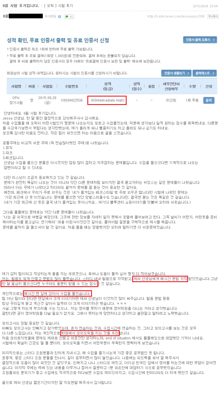 오픽 | (대구오픽 IH후기) 한달 열심히 듣는다면 누구라도 충분히 받을수 있는 점수!! 페이지 정보 작성자 MELPARK 작성일15-09-18 09:10 조회4,147회 댓글0건 이전글 다음글 목록 본문 (클릭 하시면 크게 보실 수 있습니다.) 수강생 후기 입니다. 더 많은 후기는 우측 카페 링크 가입 후 보실 수 있습니다. 이전글 다음글 목록