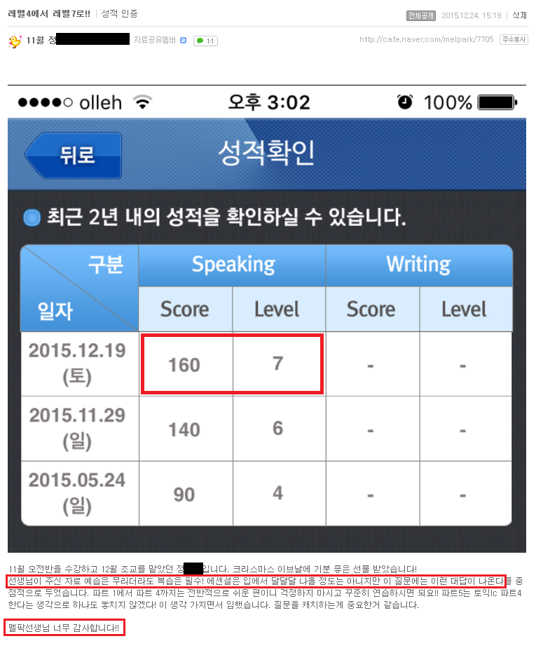 토스 | (대구토스 7급후기) Level 4 에서 Level 7 로 !! 복습 필수 !! 페이지 정보 작성자 MELPARK 작성일15-12-28 14:05 조회4,345회 댓글0건 이전글 다음글 목록 본문 (클릭 하시면 크게 보실 수 있습니다.) 수강생 후기 입니다. 더 많은 후기는 우측 카페 링크 가입 후 보실 수 있습니다. 이전글 다음글 목록