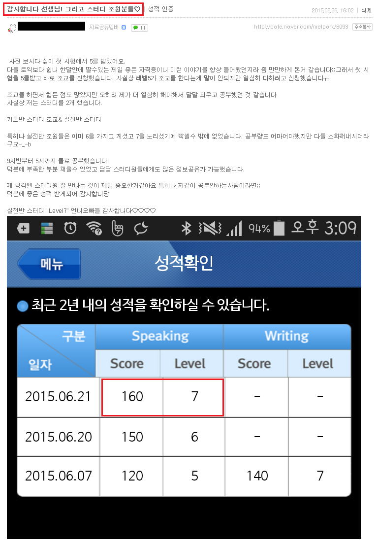 토스 | (대구토스 7급후기) 감사합니다 선생님! 그리고 스터디 조원분들♡ 페이지 정보 작성자 MELPARK 작성일15-09-30 08:52 조회4,297회 댓글0건 이전글 다음글 목록 본문 (클릭 하시면 크게 보실 수 있습니다.) 수강생 후기 입니다. 더 많은 후기는 우측 카페 링크 가입 후 보실 수 있습니다. 이전글 다음글 목록