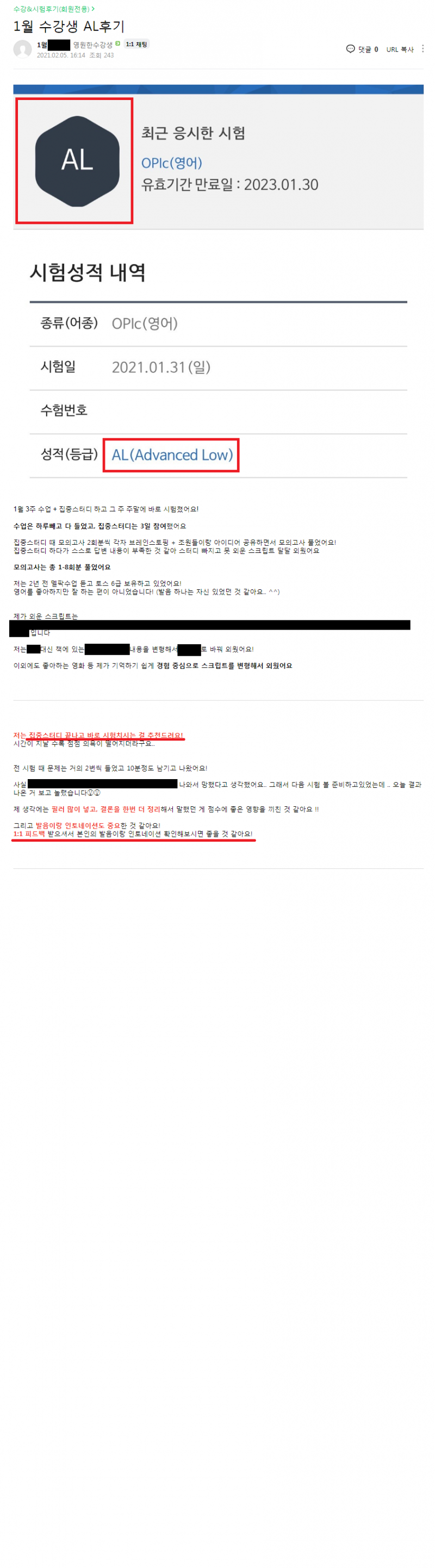 오픽 | (대구오픽 AL후기) 집중스터디가 너무 도움되었어요!! 페이지 정보 작성자 MELPARK 작성일21-03-05 14:23 조회10,217회 댓글0건 이전글 다음글 목록 본문 #멜팍어학원 #제싸오픽 #대구오픽 #대구오픽학원 이전글 다음글 목록